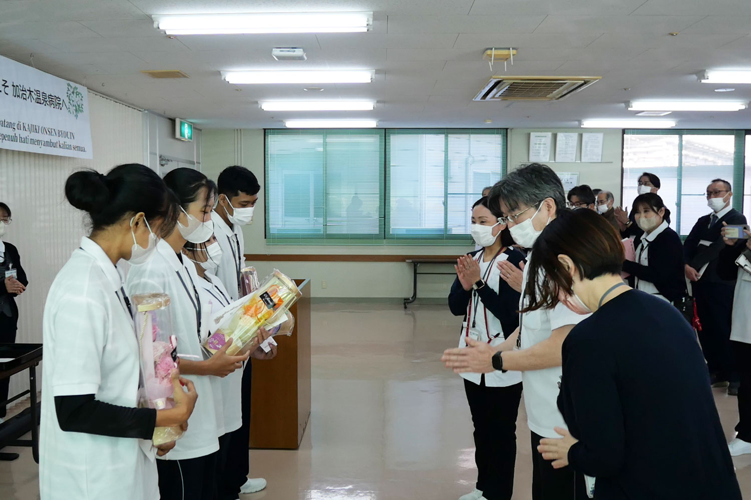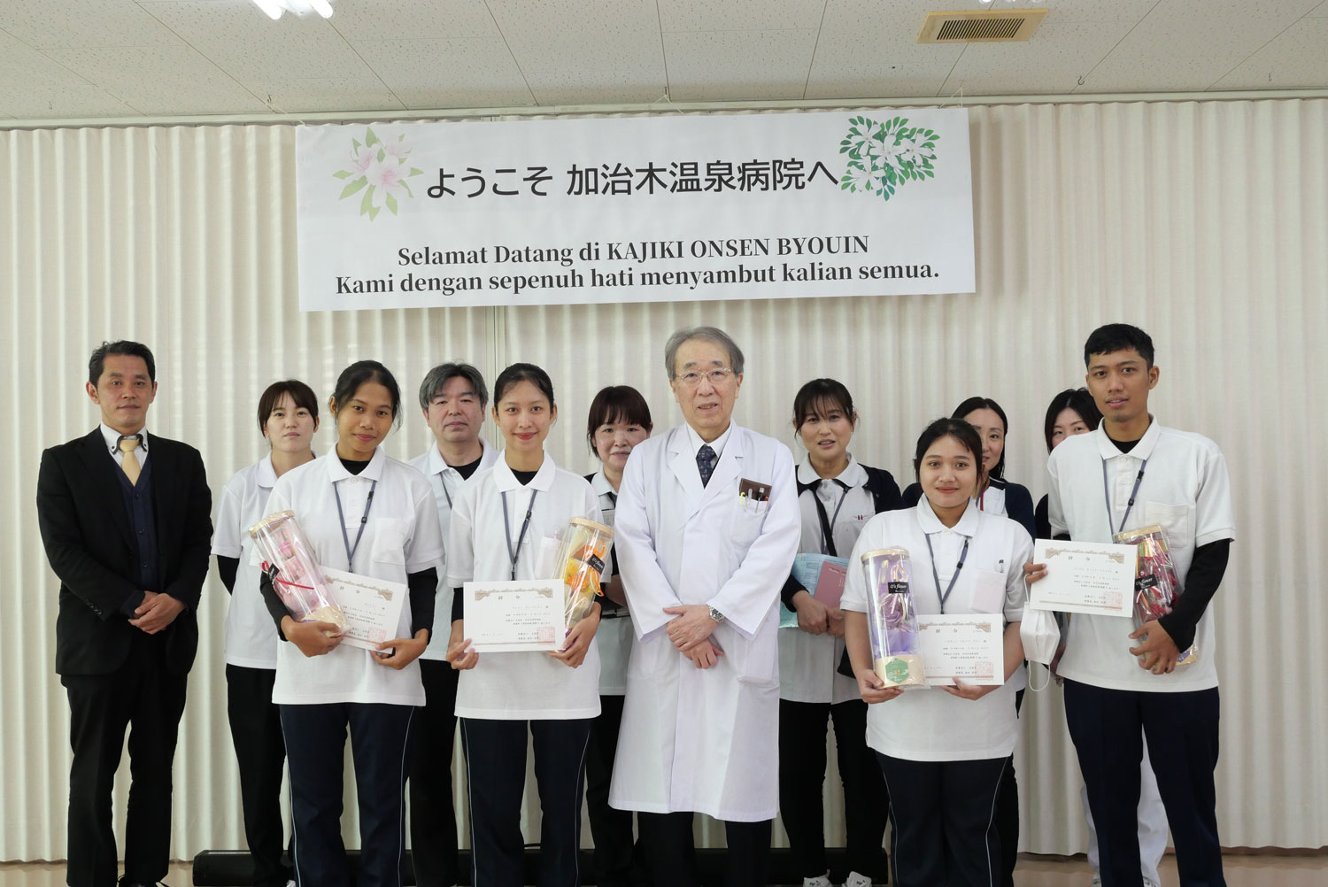 インドネシアから着任した特定技能外国人スタッフへ辞令を交付しました 加治木温泉病院 > お知らせ > インドネシアから着任した特定技能外国人スタッフへ辞令を交付しました 2026年03月16日 インドネシアから4名の特定技能スタッフが着任しました。介護福祉士資格の取得を目標に、慣れない日本での生活と仕事の両面で努力を重ねながら業務に取り組んでいます。患者さんに安心と信頼を感じていただけるよう、現場での経験を積み重ね、多職種と協力しながら地域医療に貢献してまいります。